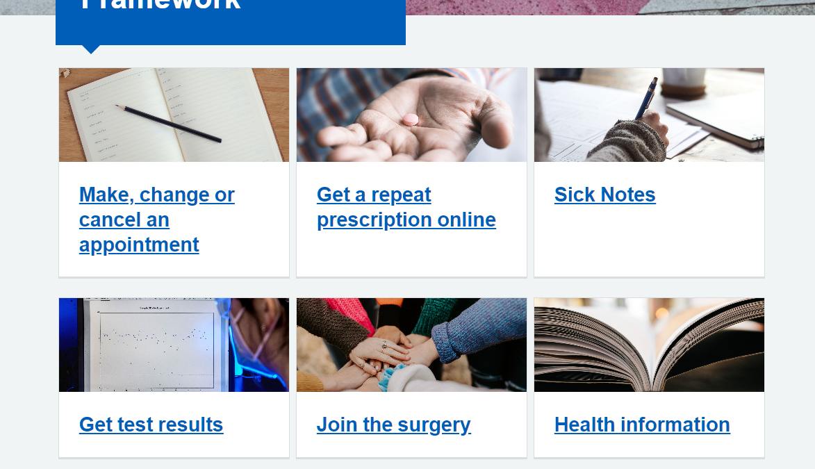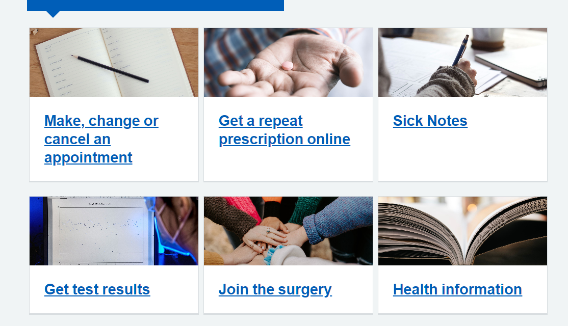 On the appointments page clear details of which apps or online tools enable patients to book, change or cancel an appointment. Links to register for services or to login to the service.