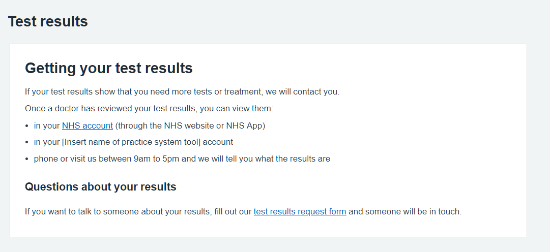 Clear guidance on getting test results and questions about getting your results: