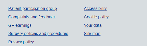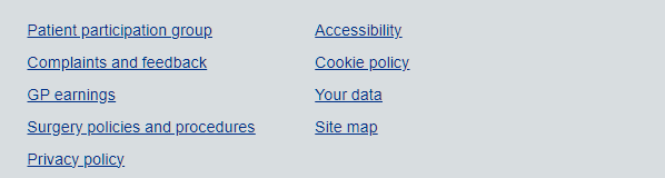 Easy to find in the Further information section at the bottom of all pages. Informations about how to make a complaint to the practice. Form within the site.