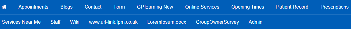 Both of these menus have been condensed into one main menu across the top of the NHS template to ensure all of your menu items are available at all times for your patients and no content is lost: