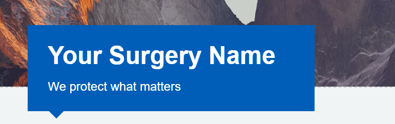 A blue background that only displays a logo, and no practice name or details. We only advise using this if you replace the NHS logo with a logo that uses your practice name