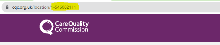 To locate your unique CQC number, visit the CQC website, search for your practice on the homepage and select on your practice practice. In the address bar in your web browser will be your unique code which looks similar to "1-546082111".