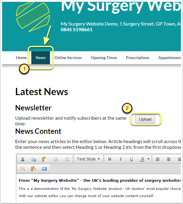 Please note, sometimes when you upload a new newsletter and then close the editor to try and view it you will still see the old one. In this case it is most likely that you are seeing a cached (saved) page as when you upload a new newsletter it gives it the same name as the old one. Please try pressing Ctrl+F5 to force your browser to refresh so you can see the new version or check it in another browser or on another computer. Patients should not experience this issue.