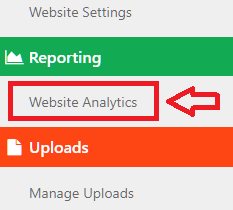 To turn on Website Analytics, select "Website Analytics" under the "Reporting" section in the left-hand menu: