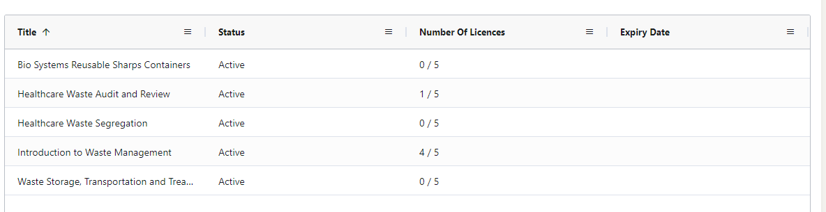 - Summary - Number of user licenses available for the e-learning course and the option to set a expiration date