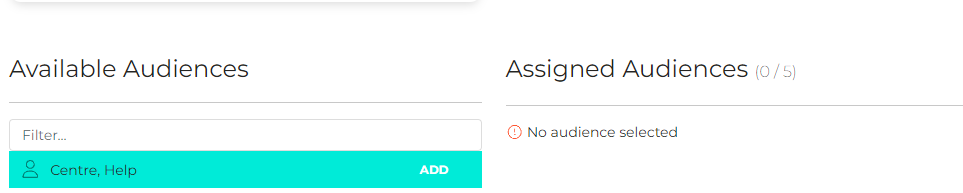 To assign a staff member to an E-Learning course, hover over their name under the Available Audiences heading and click on the Add button: