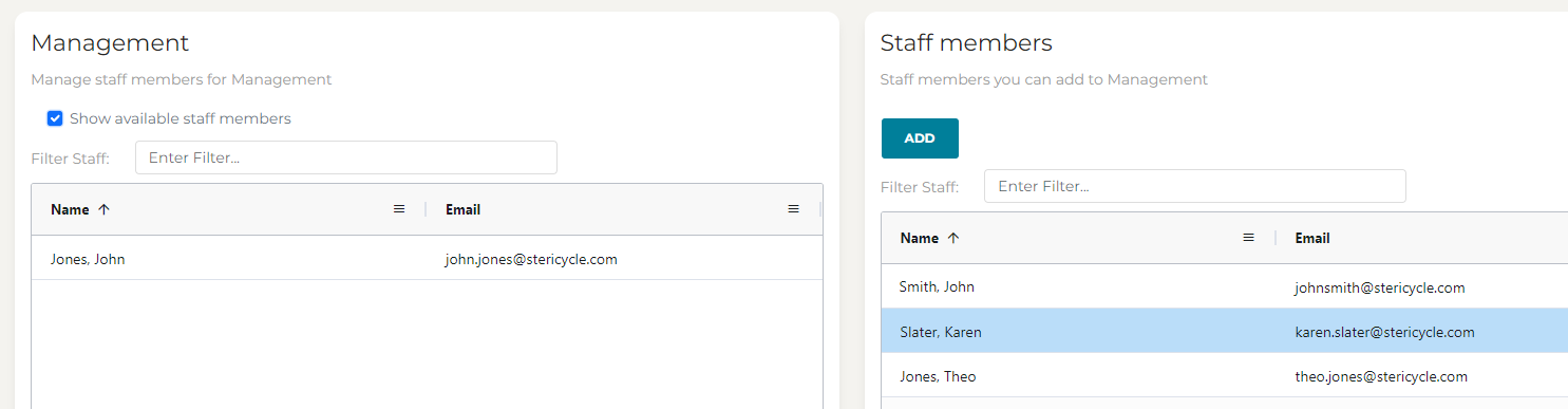 To add a staff member to the group, select their name to highlight from the right Staff members column them and press Add at the top.