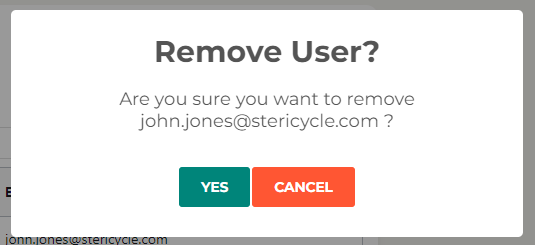 A prompt will show asking you to confirm you’d like to remove the user: Press Yes to confirm or Cancel.