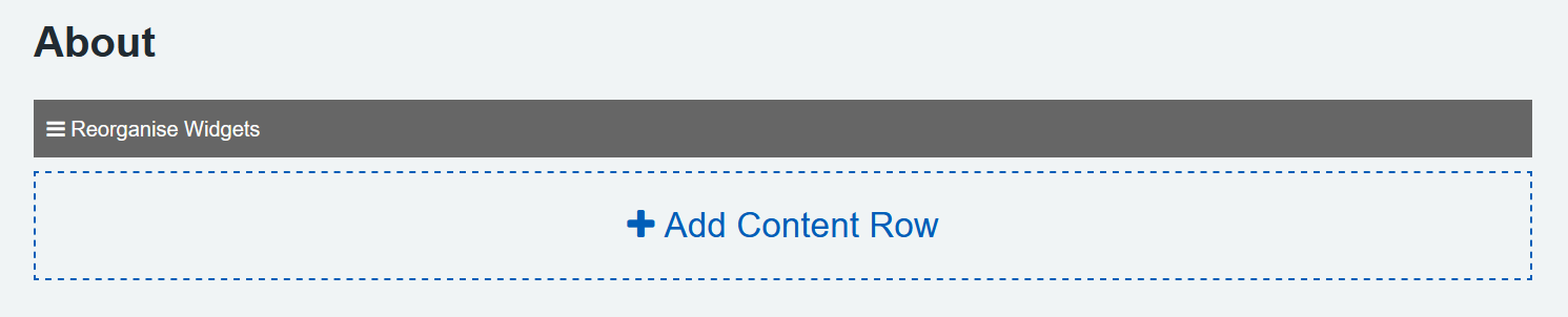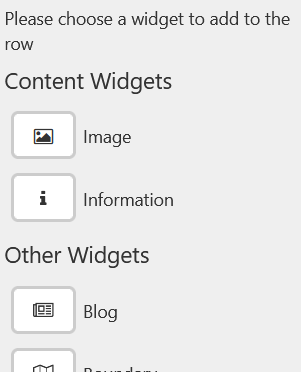 - Click the + sign in the grey bar on the left of the row then click Add Widget.