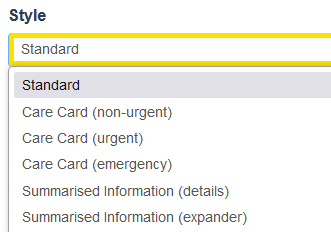 - Use Care Card styles sparingly to avoid your page becoming visually overwhelming.