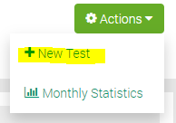 2) Click on the 'Actions' button on the top right and choose '+ New Test'