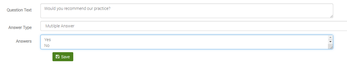 3) Add the Question Text, Answer Type and Answers (if applicable)