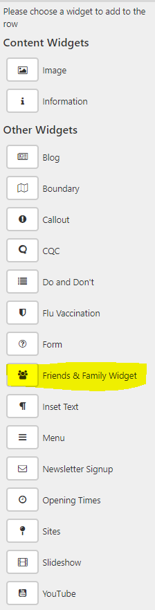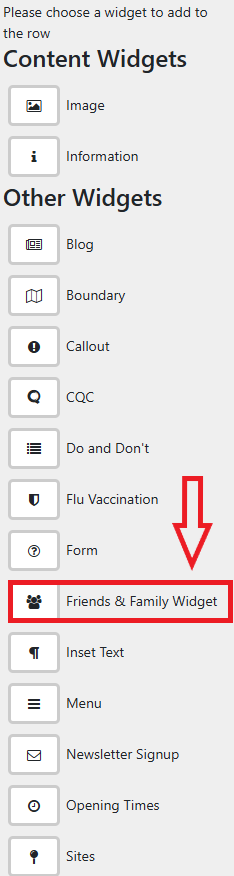 2) Click the + Icon on a row, choose 'Add widget' and select 'Friends & Family Widget'
