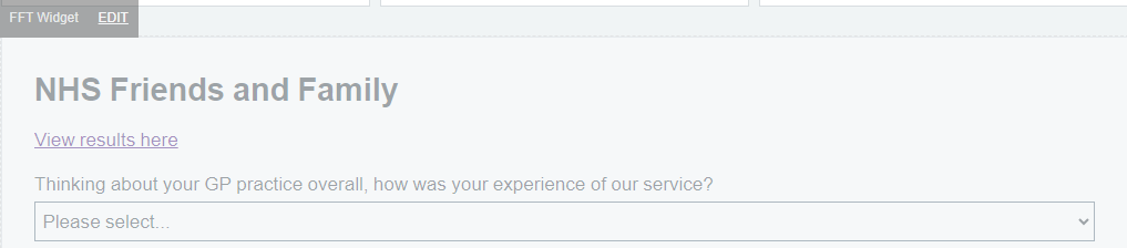 Once you have the FFT set up within FPMS, we need to add it to the website so patients are able to enter responses. To do this you need to:
