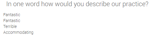 This section will show you the main two FFT question responses. This area does not show any data for additional questions.
