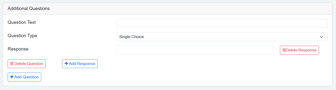 To add additional response for Single Choice and Multiple choice click the '+ Add Response' button.