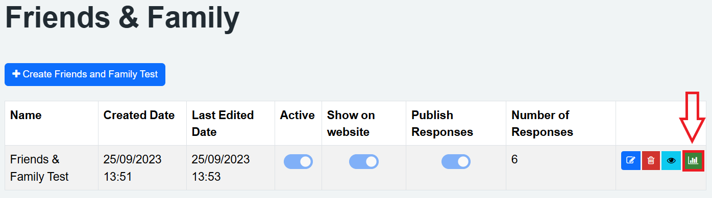 2) To see the response, click on the statistics icon in the last column of the FFT within the Friends & Page.