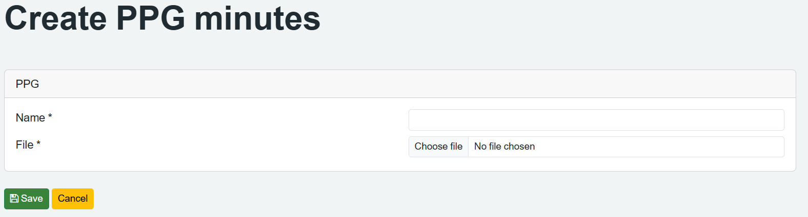 Once you have completed the Create PPG minutes page and clicked save it will then be added to the main PPG page as follows: