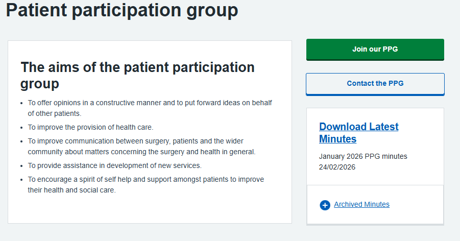 PPG members that have signed up via the website can receive emails from the practice, including any PPG minutes that have been uploaded to the website.