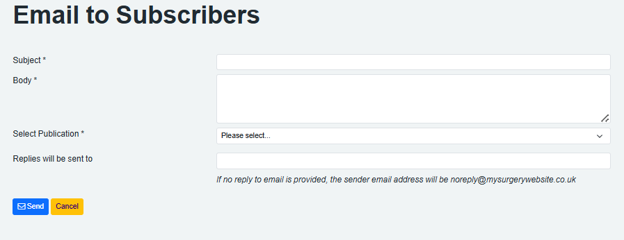 - Replies will be sent to - You can choose an email that PPG members can reply to the email to. This can be useful if sending out a next PPG meeting email as members can reply stating their availability.