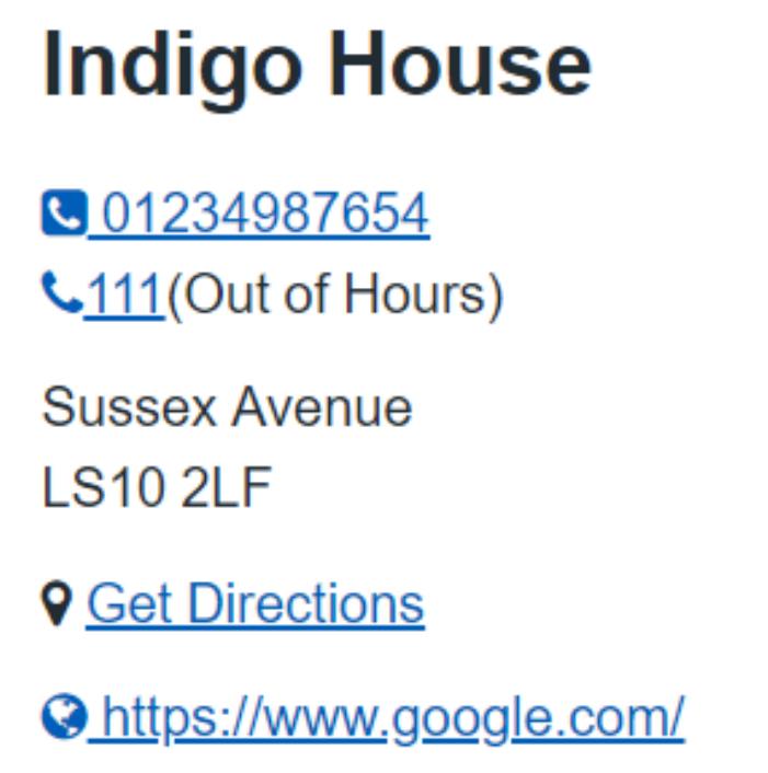 - There is an Out of Hours tick box that will allow you to display the message 'Out of hours' after the contact information which will display as: