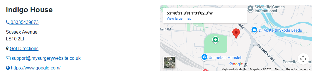 - Name - The name of the surgery