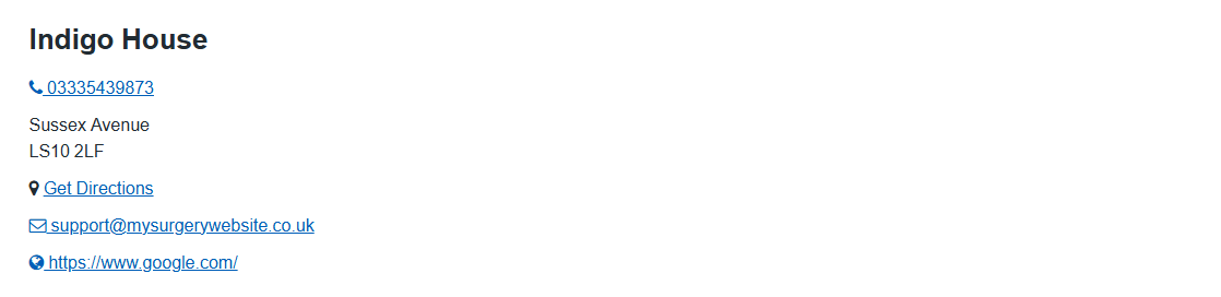 - This will come up with a separate menu allowing you to add phone numbers or emails that patients can contact the practice on