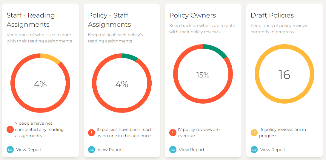 - Policy Owners - Keep track of who is up to date with their policy reviews.
