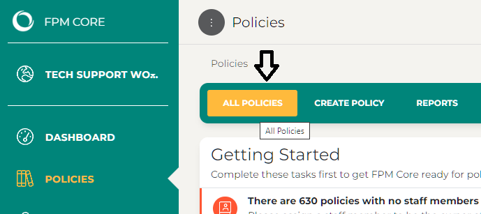 Select Policies from the menu on the left, and select All Policies: